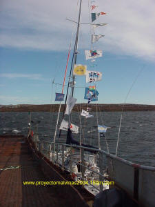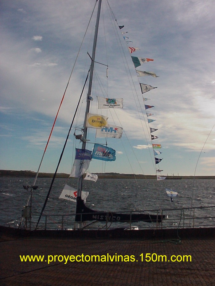 Estaba previsto que el Místico durante la partida de San Isidro, su estadía en Puerto Argentino, y al arribo de vuelta a San Isidro, estaría empavesado y con banderas de los Socios de Proyecto.