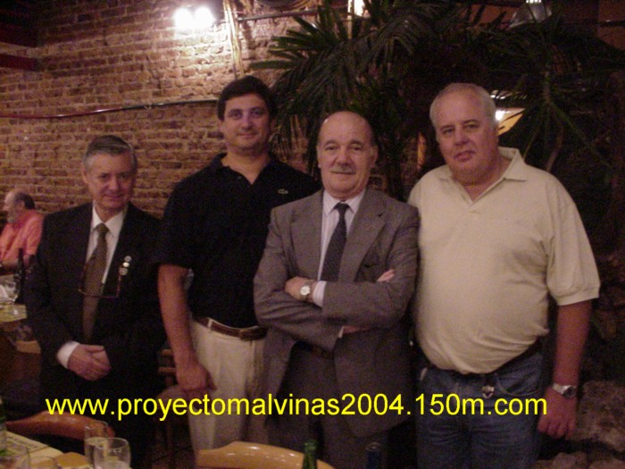 De Izq. a Derecha: Capitán de Ultramar VGM Edgardo Edgardo Dell´Elicine comandante del B/M Río Carcarañá / Marcelo González tripulante Velero Místico / Capitán de Navío ARA (RE) VGM Héctor Elías Bonzo Comandante del ARA Crucero General Belgrano / Jorge Mario Bertolino Capitán del Velero Místico. Foto tomada durante la cena de despedida que nos hicieran los VGM (Veteranos Guerra Malvinas. |