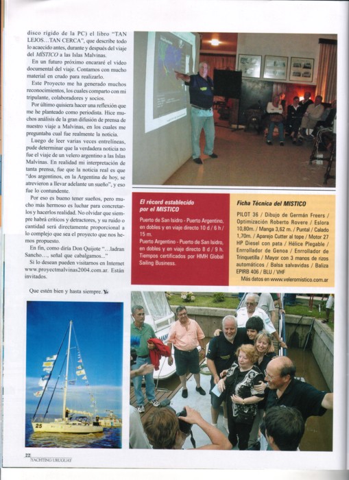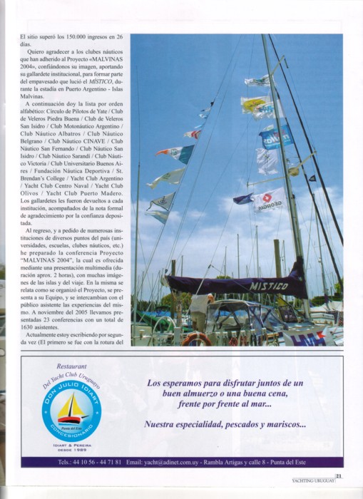 Revista YACHTING URUGUAY (Montevideo ROU) - N° 8 marzo/abril - Proyecto "MALVINAS 2004" - Parte V |