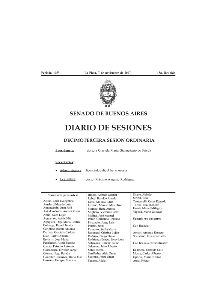 Senadores de la Provincia de Buenos Aires, con tan honorable mención. |