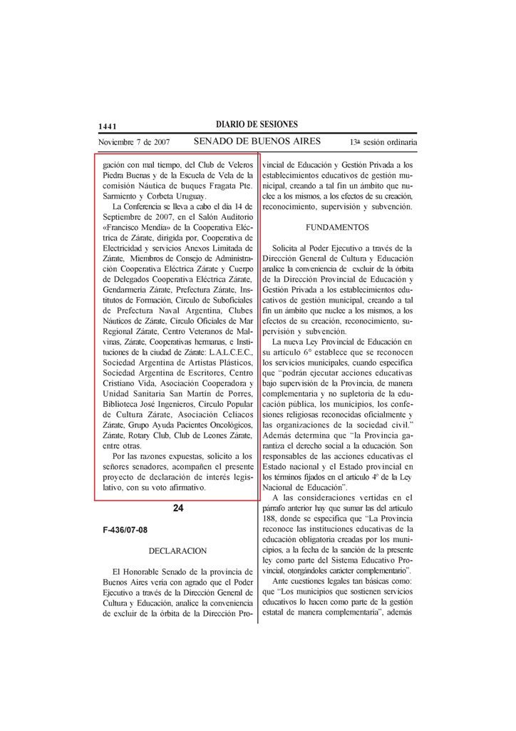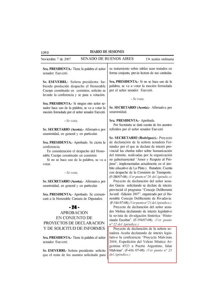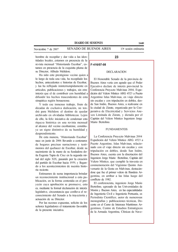 "DECLARACIÓN DE INTERÉS LEGISLATIVO" (F416/07),