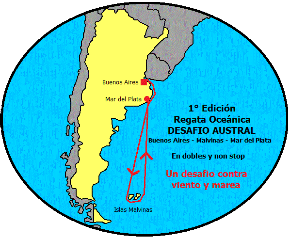 El Recorrido: línea de largada en Buenos Aires, dejar por babor boya frente al Cabo Corrientes de la Ciudad de Mar del Plata, Virar por babor las Islas Malvinas y línea de llegada frente al Cabo Corrientes en la Ciudad de Mar del Plata, sin escalas (non stop).